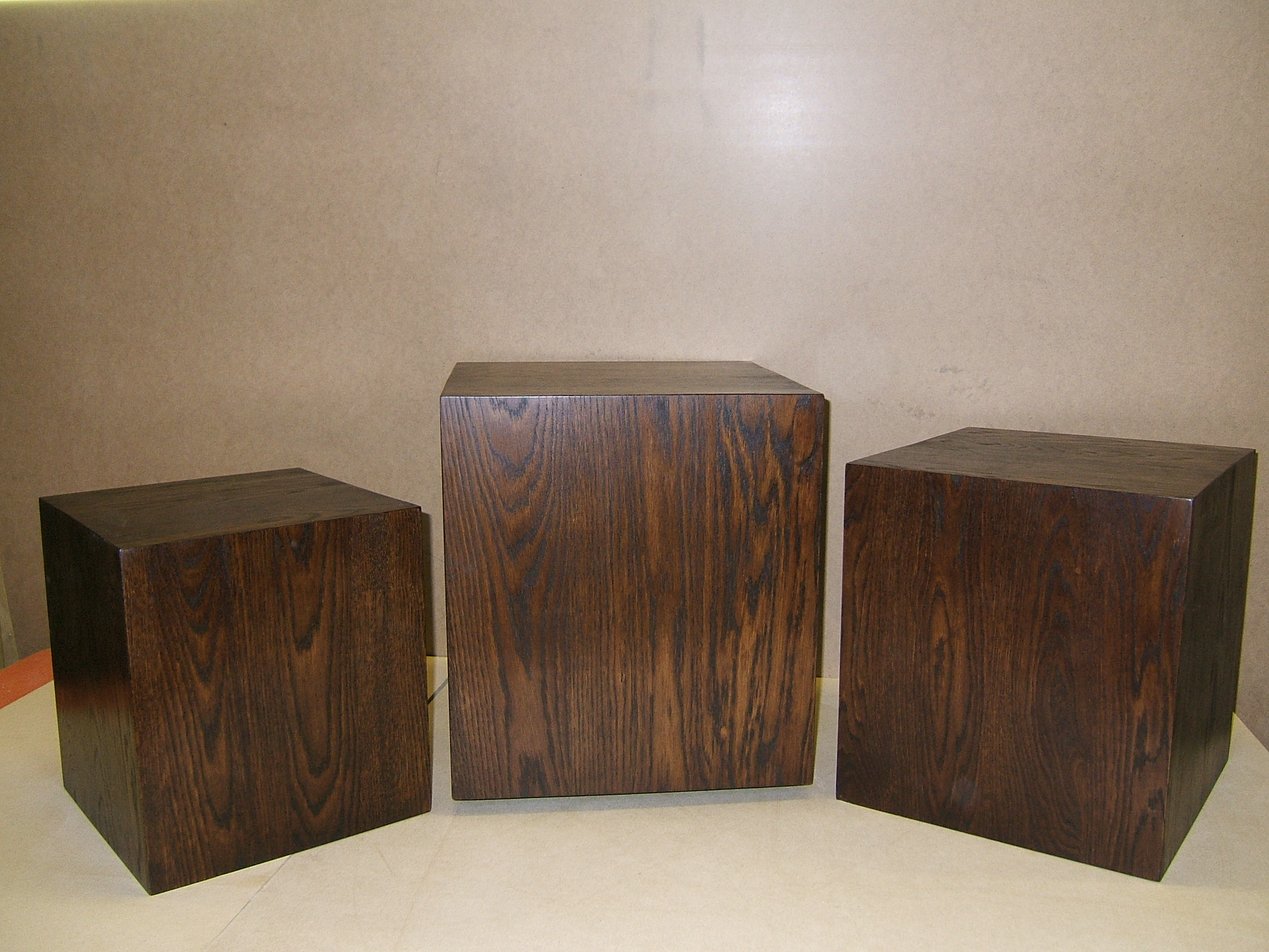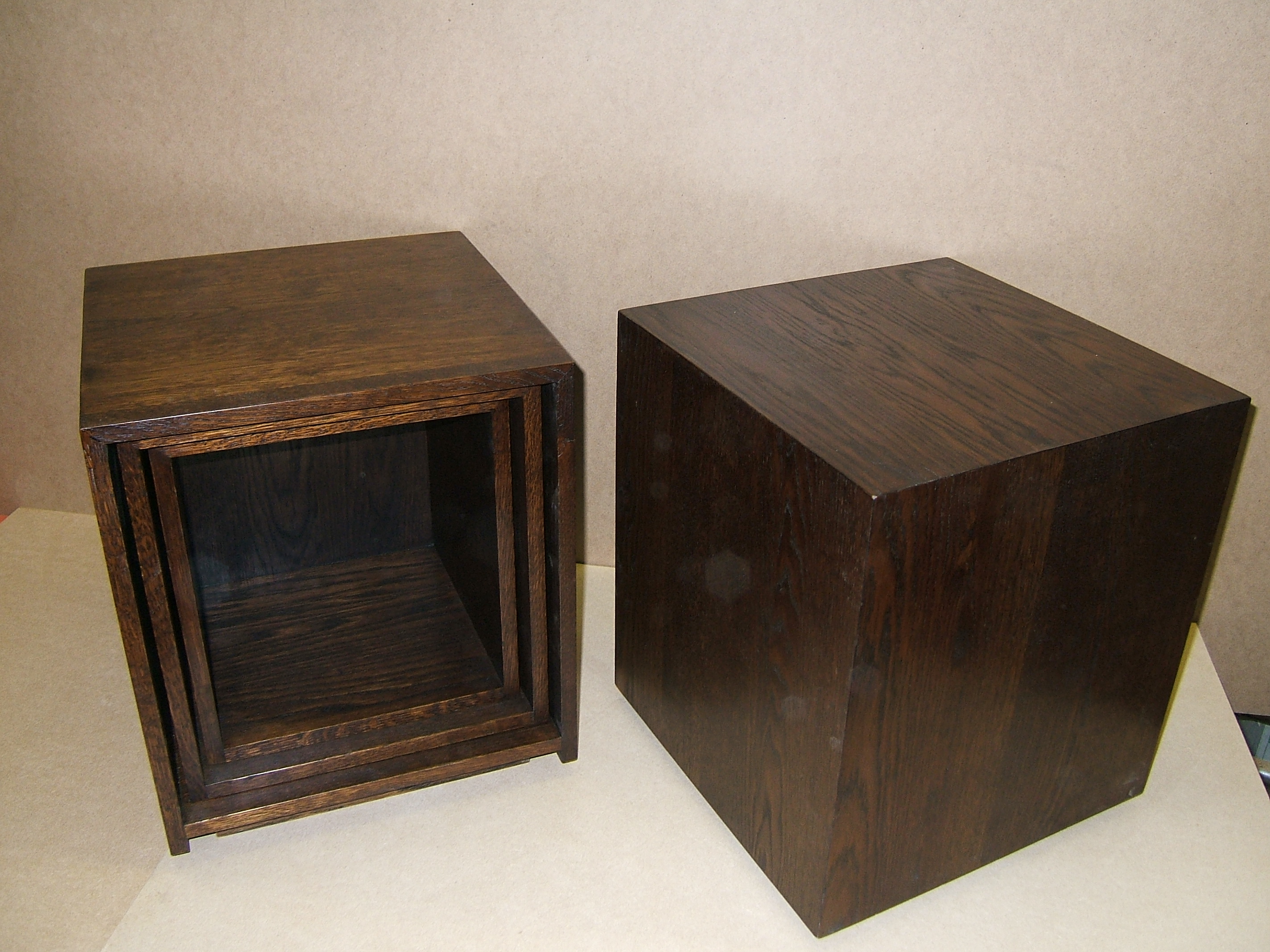 This nest of side tables was made from oak and stained. I fitted a Lazy Susan to the base so they could be swivelled round easily when they needed to be stacked or un-stacked.